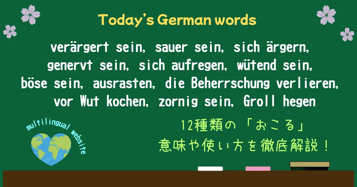 「怒る・イライラする・キレる」はどう違う?ドイツ語の「怒り」の表現12選を徹底使い分け(verärgert sein, sauer sein, sich ärgern, genervt sein, sich aufregen, wütend sein, böse sein, ausrasten, die Beherrschung verlieren, vor Wut kochen, zornig sein, Groll hegen)